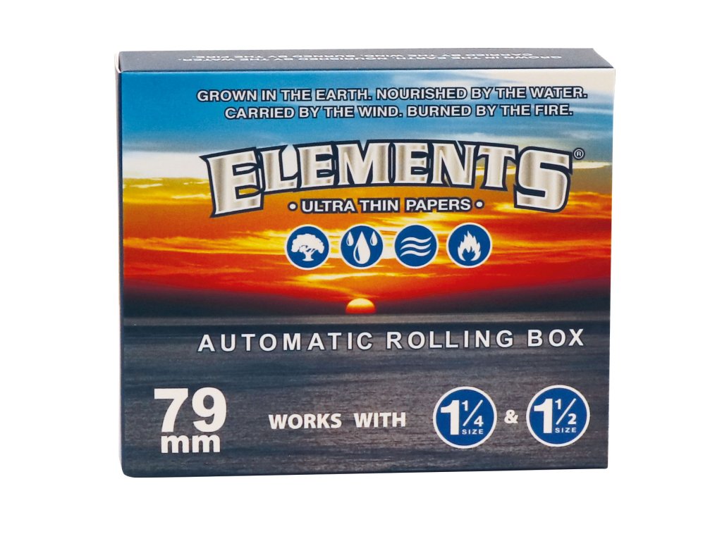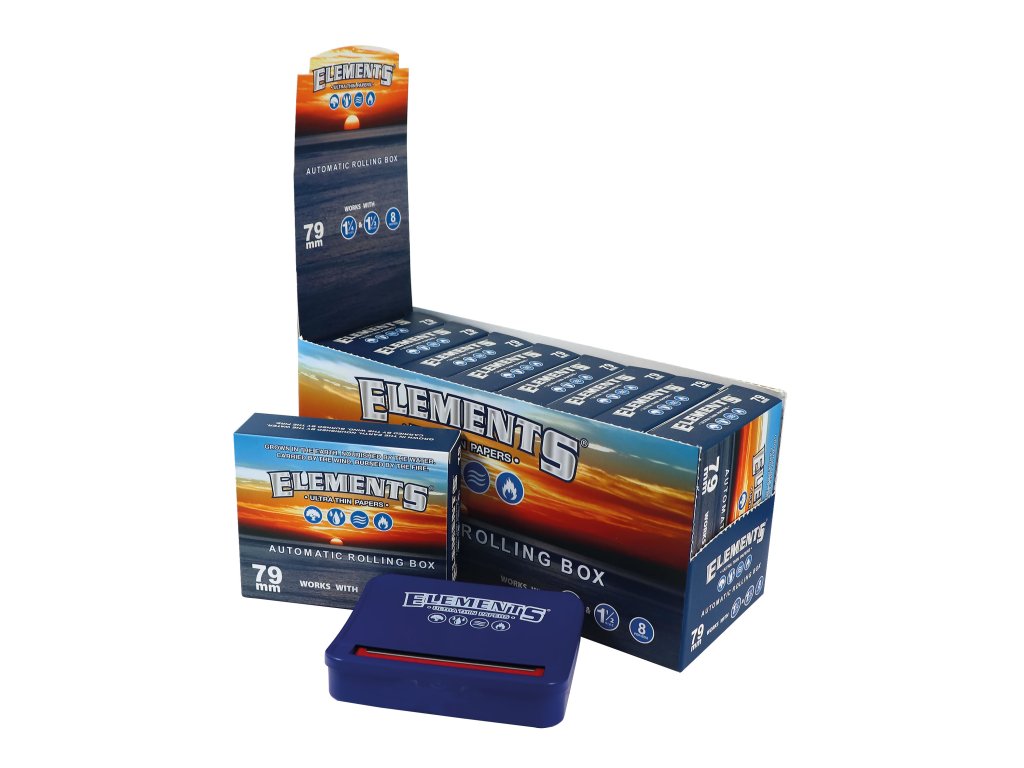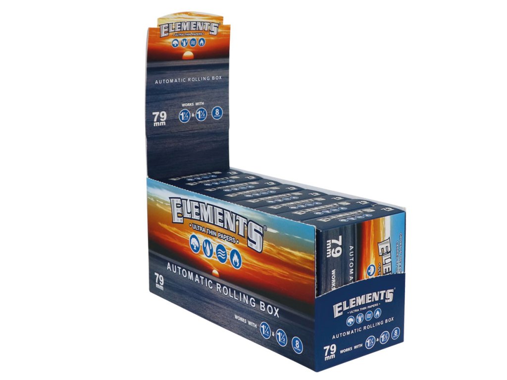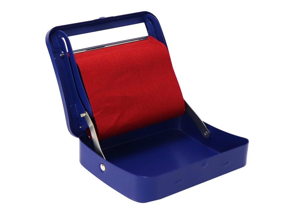 Značkový modrý kombajn 79mm je kovové cigaretové pouzdro s automatickou baličkou na střední papírky velikosti 78mm - 1 1/4, 1 1/2.