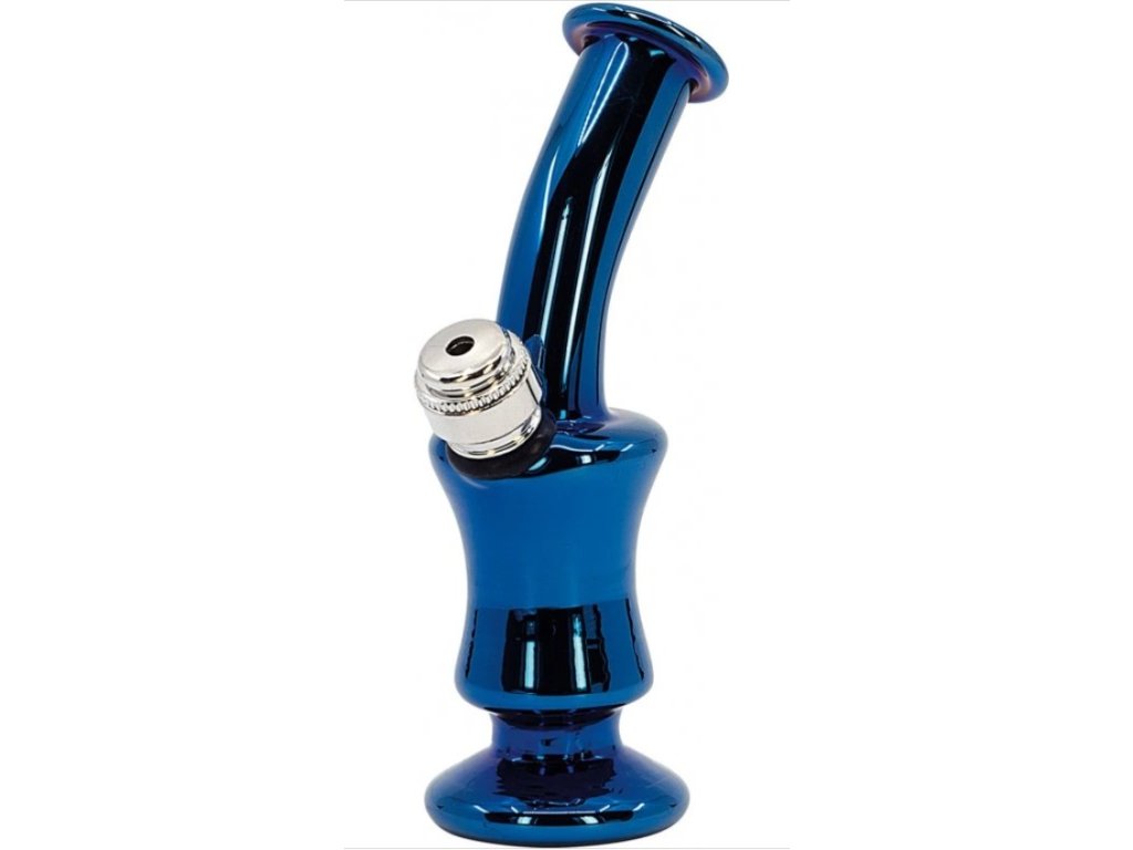 Malý skleněný bong v modré barvě s duhovými odlesky
