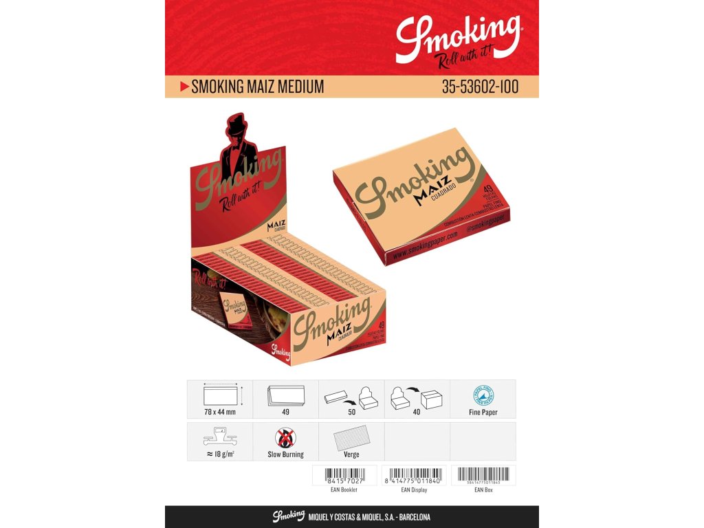 Střední papírky, extra tenké, pomalou hořící. Vyrobeno z cukrové kukuřice