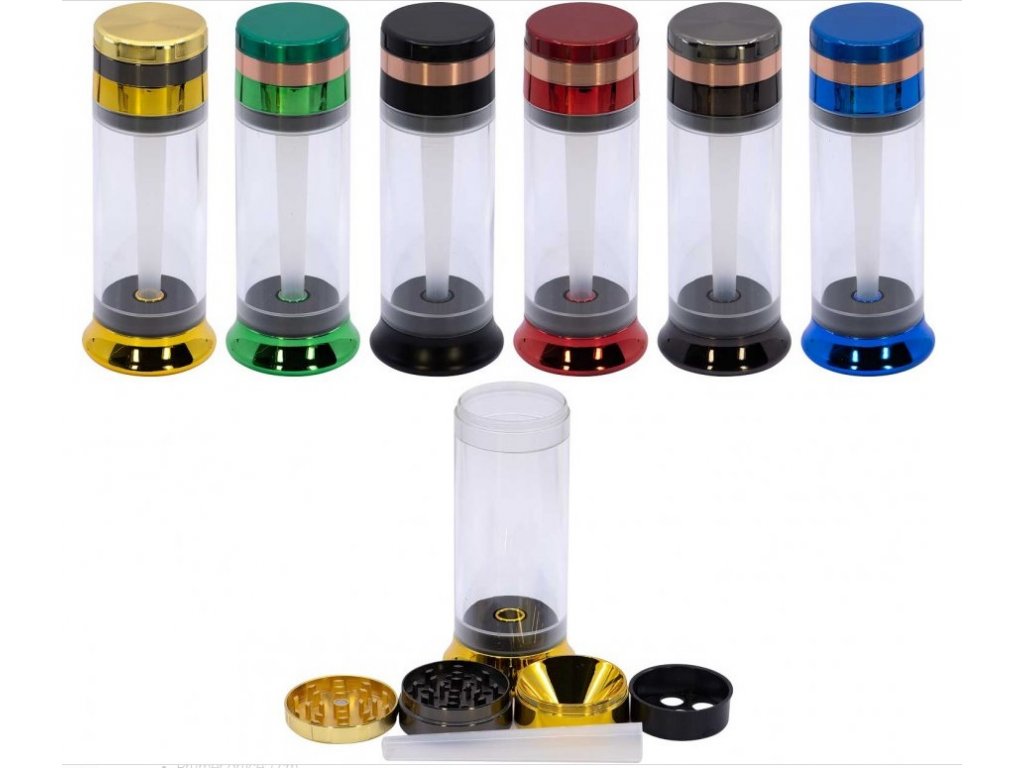 Šestidílný kovový drtič tabáku Remo s automatickým plničem, ø5cm, mix barev.