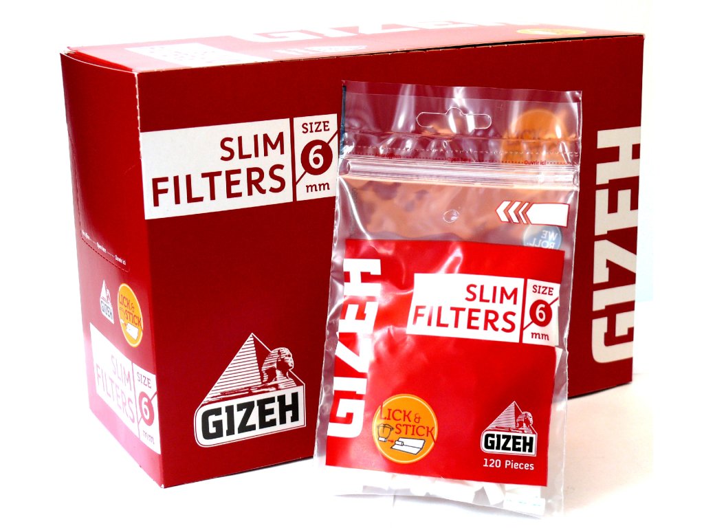 Na prodloužení cigarety, její lepší držení a filtraci můžete používat Slim Filtry GIZEH v sáčku po 120 ks.