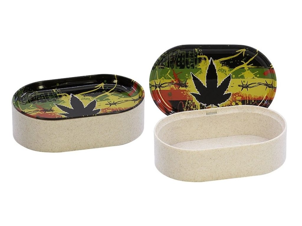 - Krabičku lze použít pro uchování bylin či tabáku, tácek slouží jako víčko