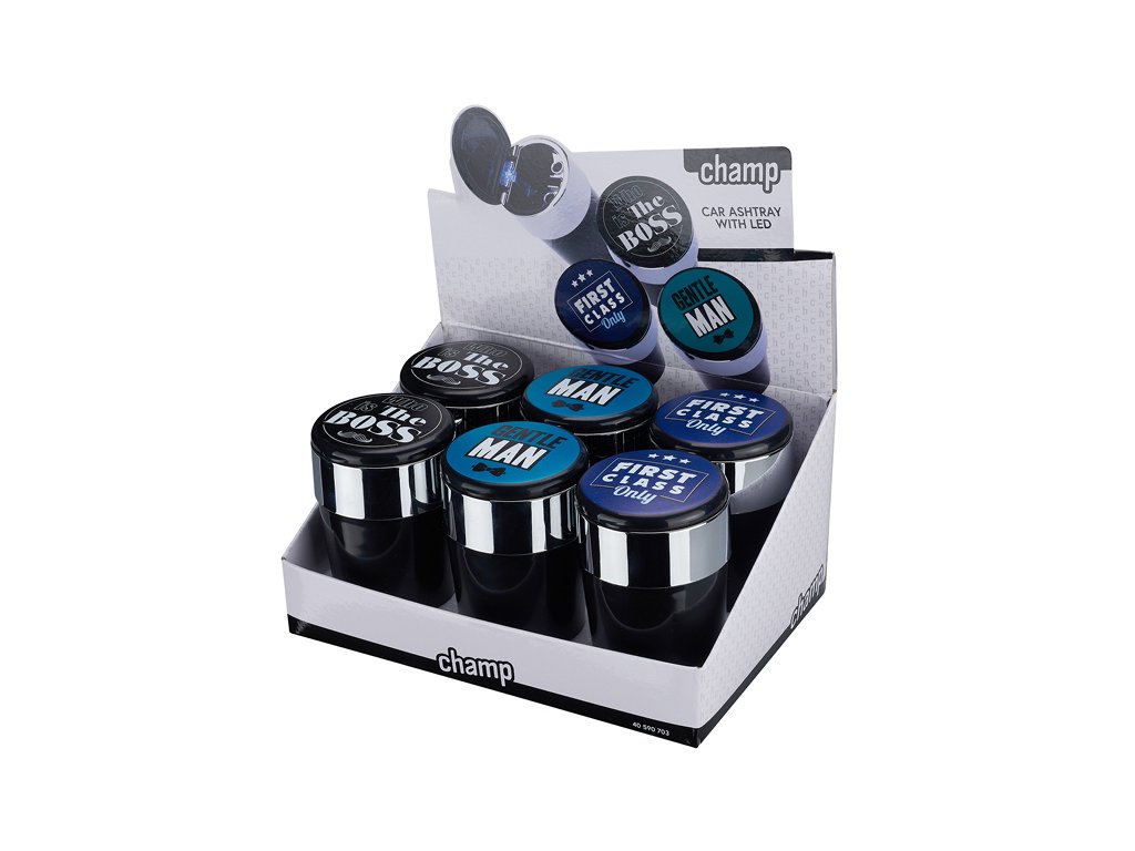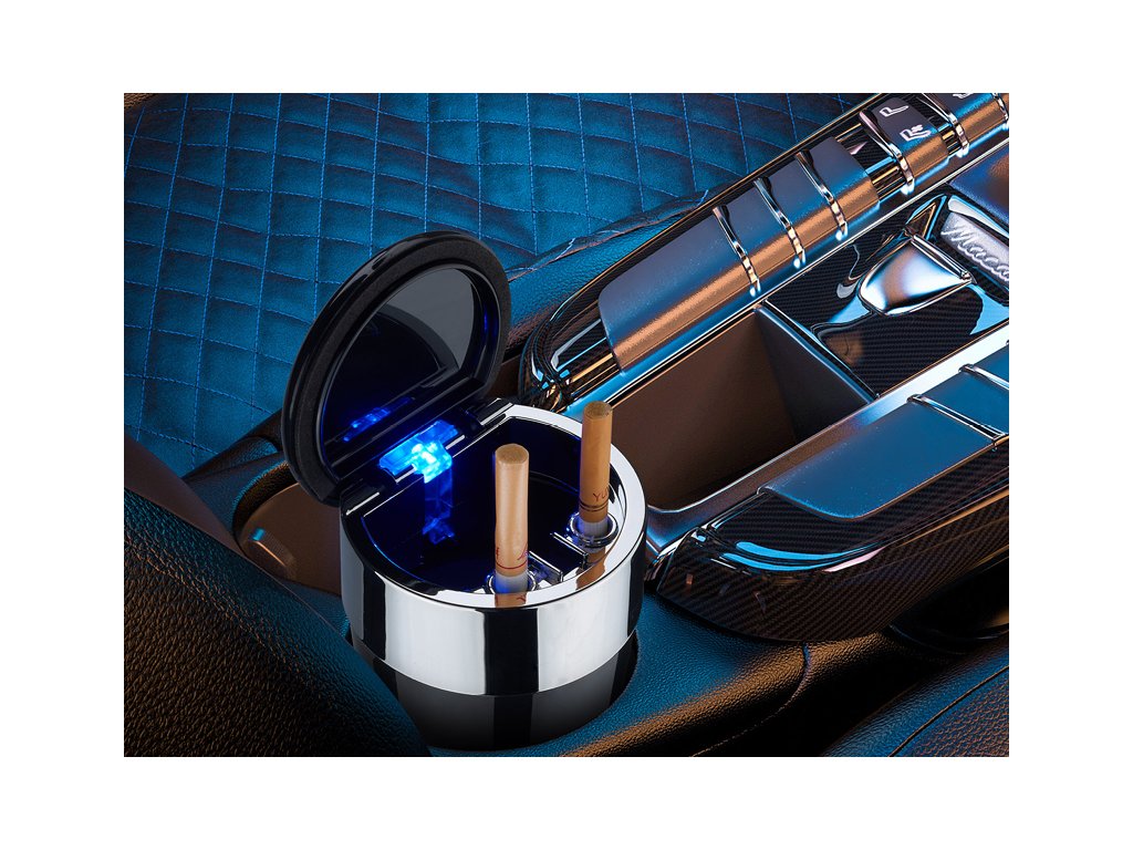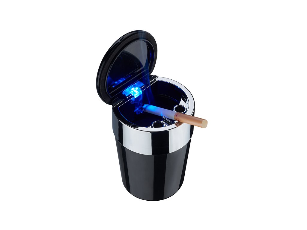 Praktický uzavíratelný popelník s LED světlem, horní díl odnímatelný pro snažší čištění, odkládací plocha pro dvě cigarety