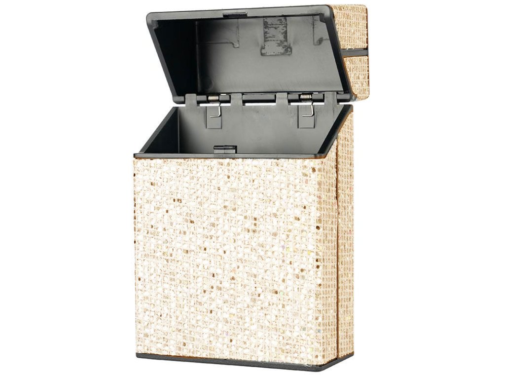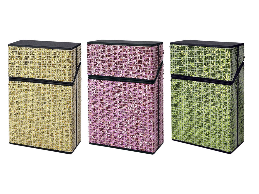 Cigaretové pouzdro s auto otevíráním, do kterého pohodlně ukryjete 20 klasických cigaret. Povrch s třpytivými flitry ve třech odstínech.