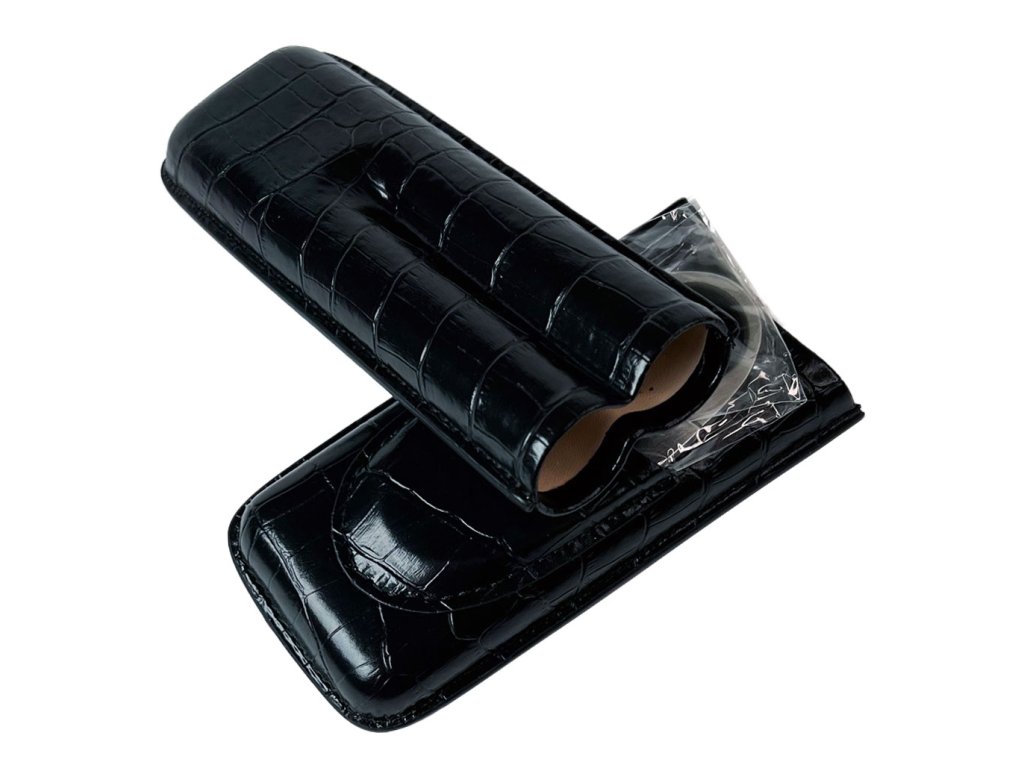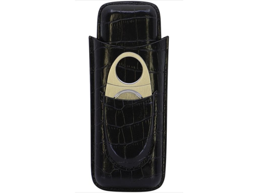 Ochranné pouzdro na 2 doutníky v černé barvě ze syntetické kůže. Jeho součástí je praktická kapsa na střihač doutníků. který je rovněž součástí balení