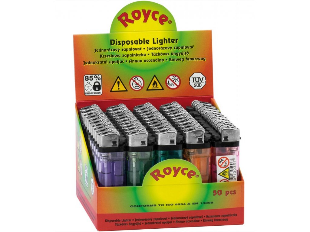 BOX (50x) Jednorázový Zapalovač Royce