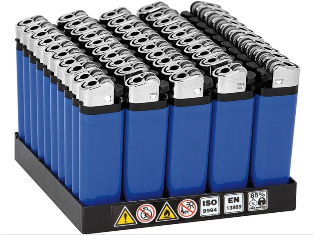 Jednorázový plastový zapalovač ROYCE se škrtacím kamínkem.