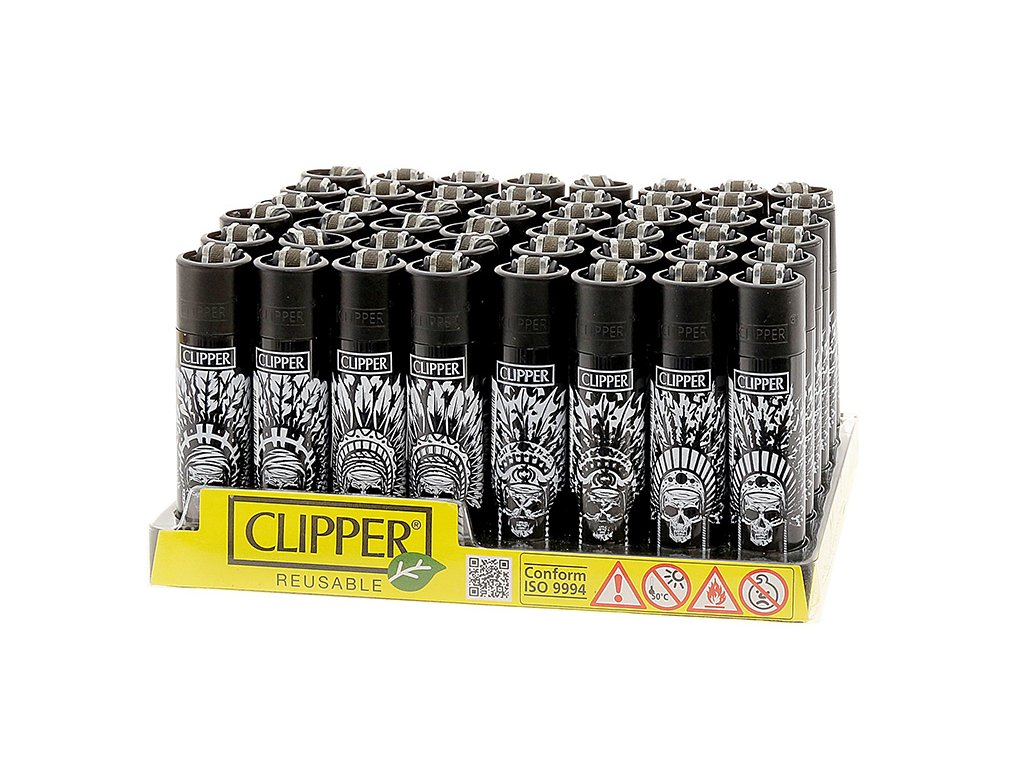Zapalovač CLIPPER Large Indian Skulls