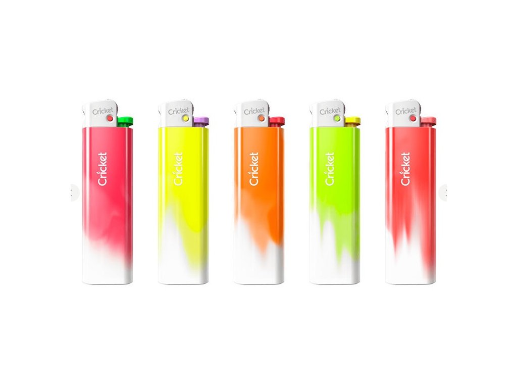 Jednorázový plastový zapalovač se škrtacím kamínkem.